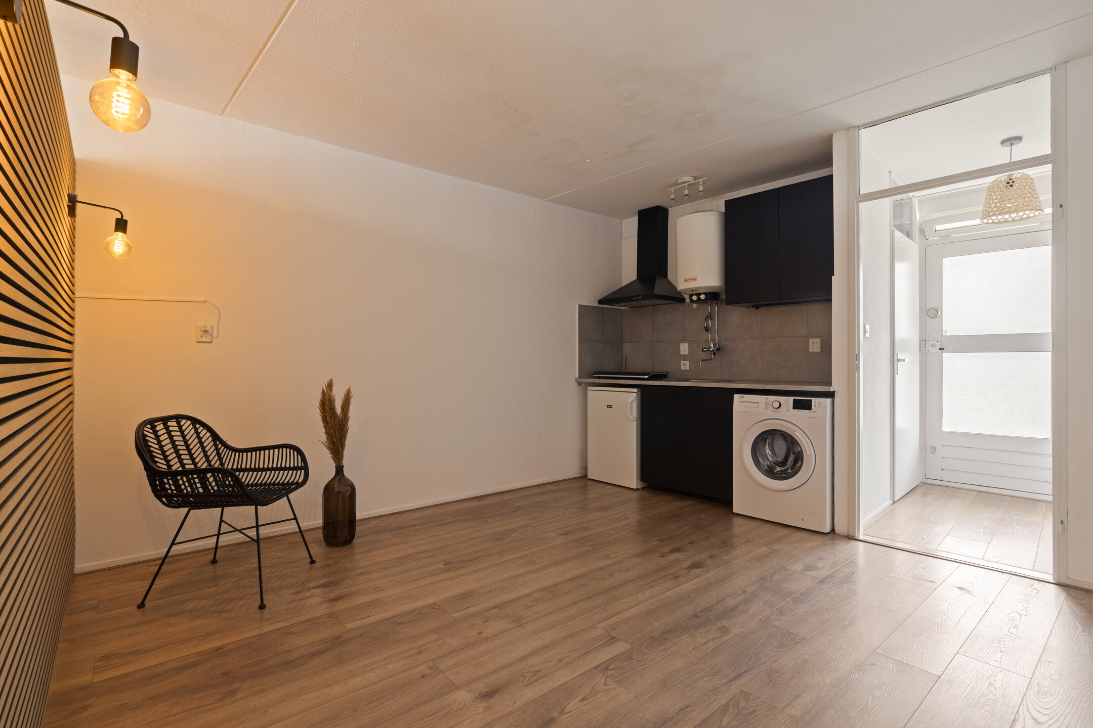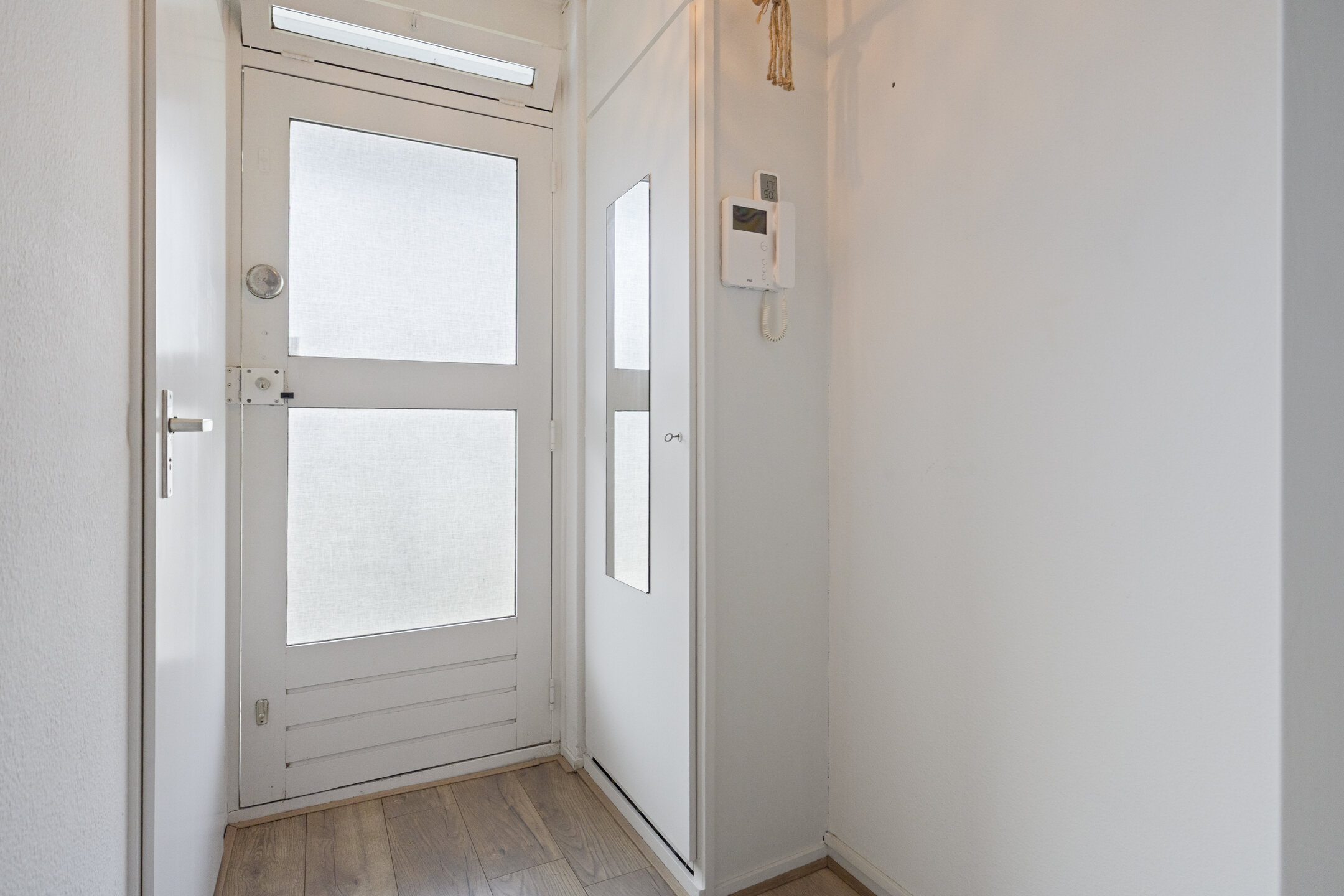 De studio is gelegen op de tweede verdieping. De entree beschikt over een meterkast en ruimte voor garderobe. Met de videofoon kunt u bezoekers eenvoudig toegang verlenen.