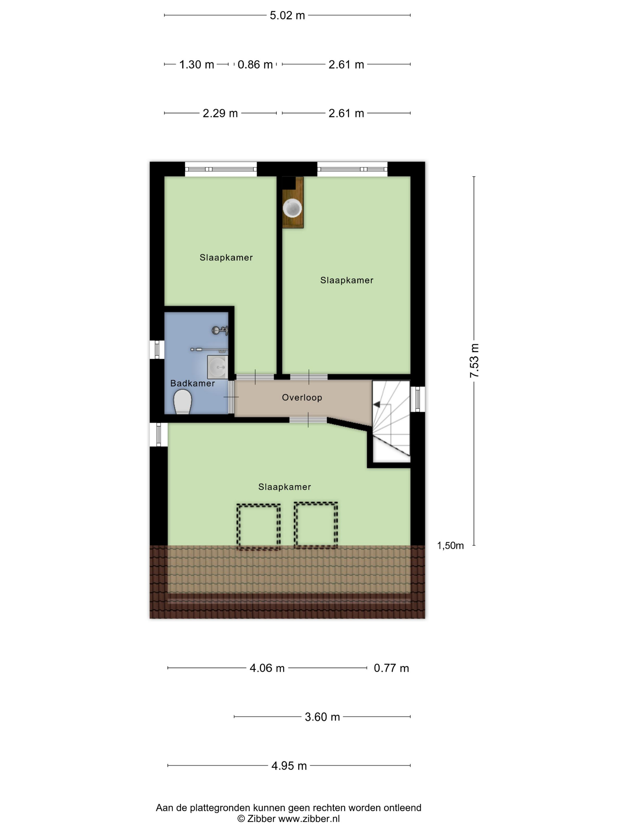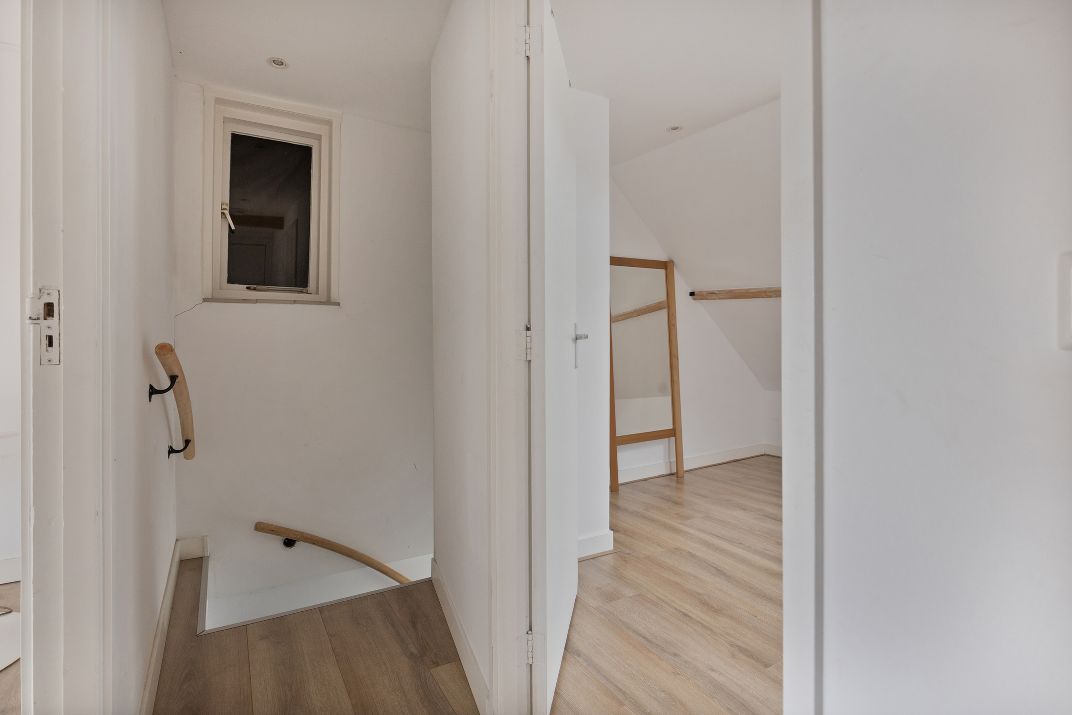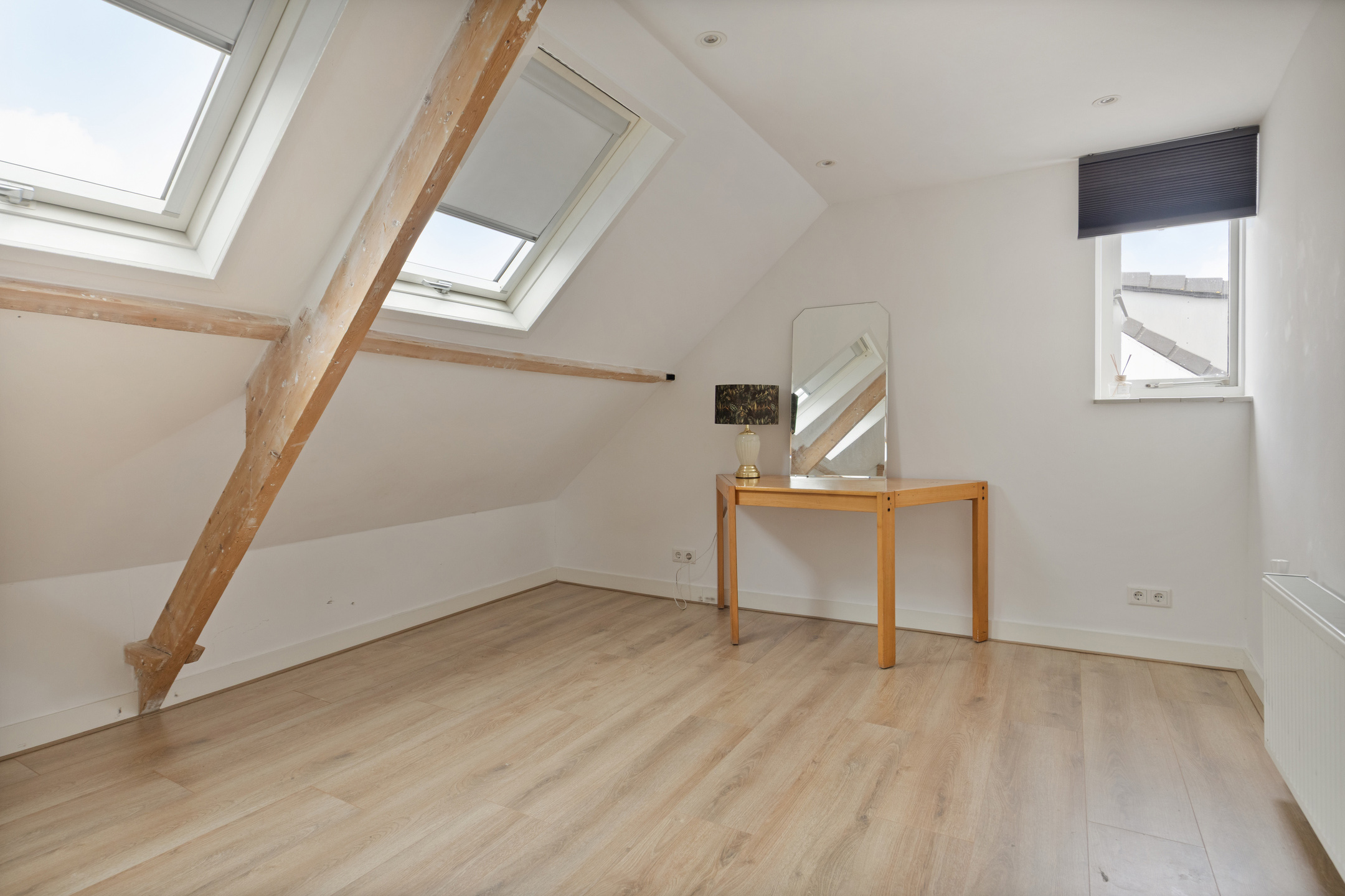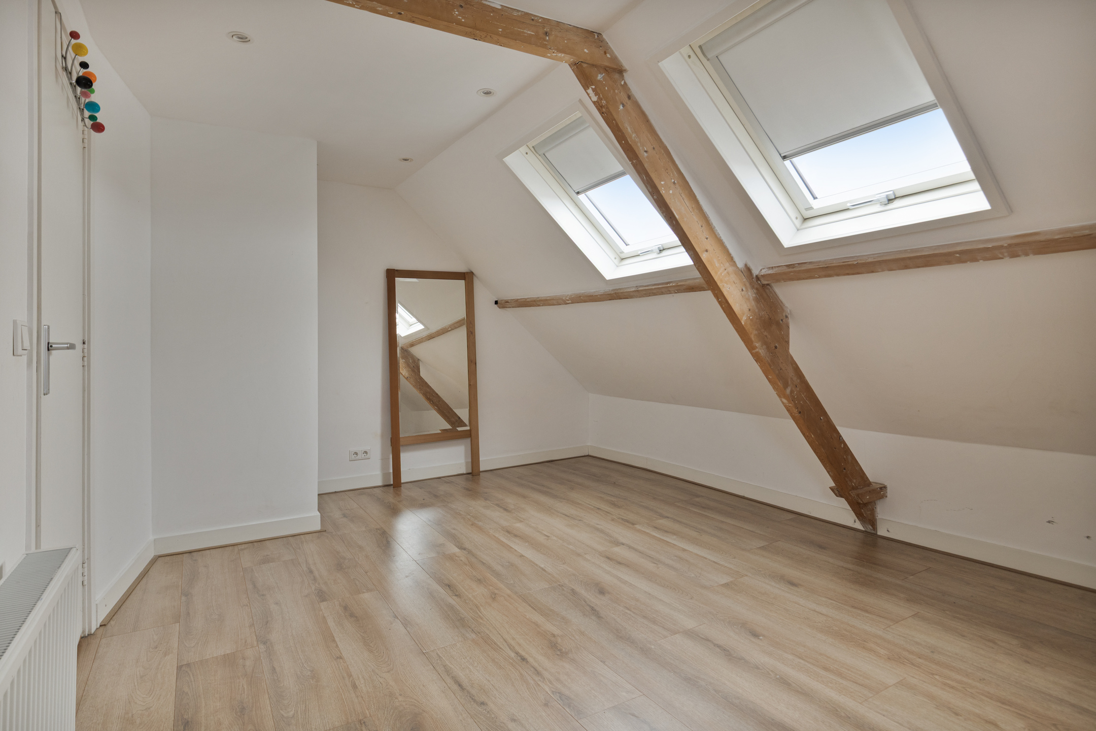 Op de verdieping zijn 3 slaapkamers, alle 3 mooie afmetingen. De slaapkamer aan de voorzijde is heerlijk ruim met veel sfeer, doordat de balken van de kap zichtbaar zijn. Ook de gemoderniseerde badkamer is op deze verdieping te vinden, met een inloopdouche, waskom met meubel, handdoekenradiator en een 2e toilet.