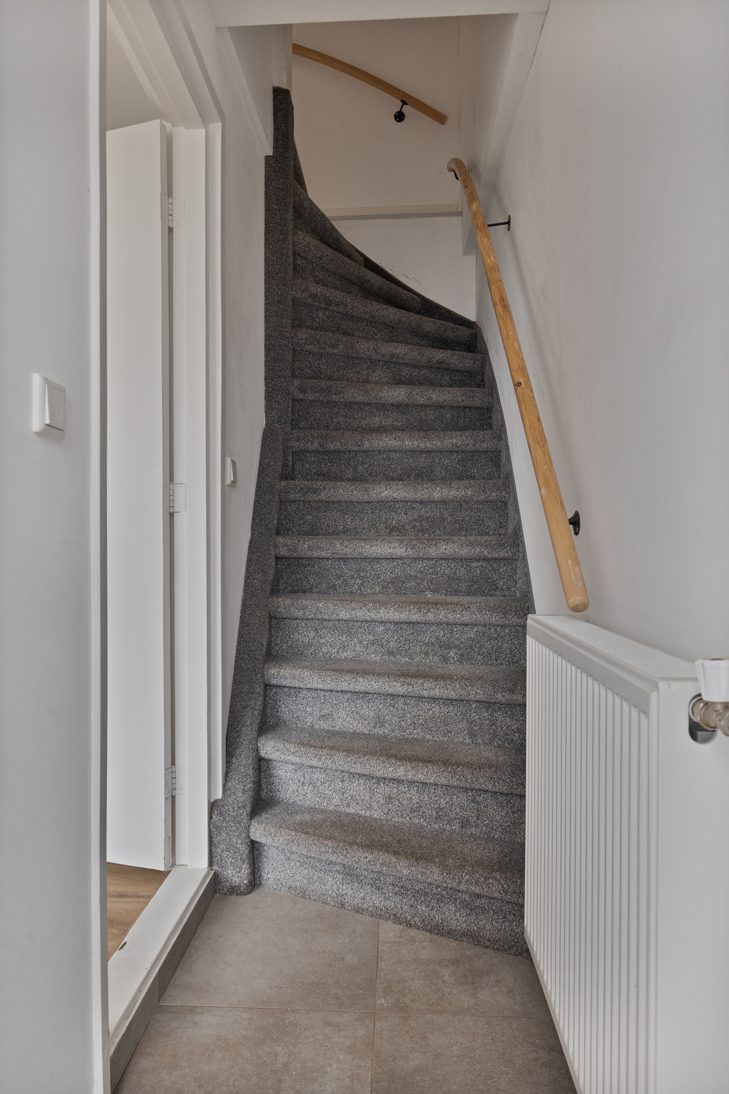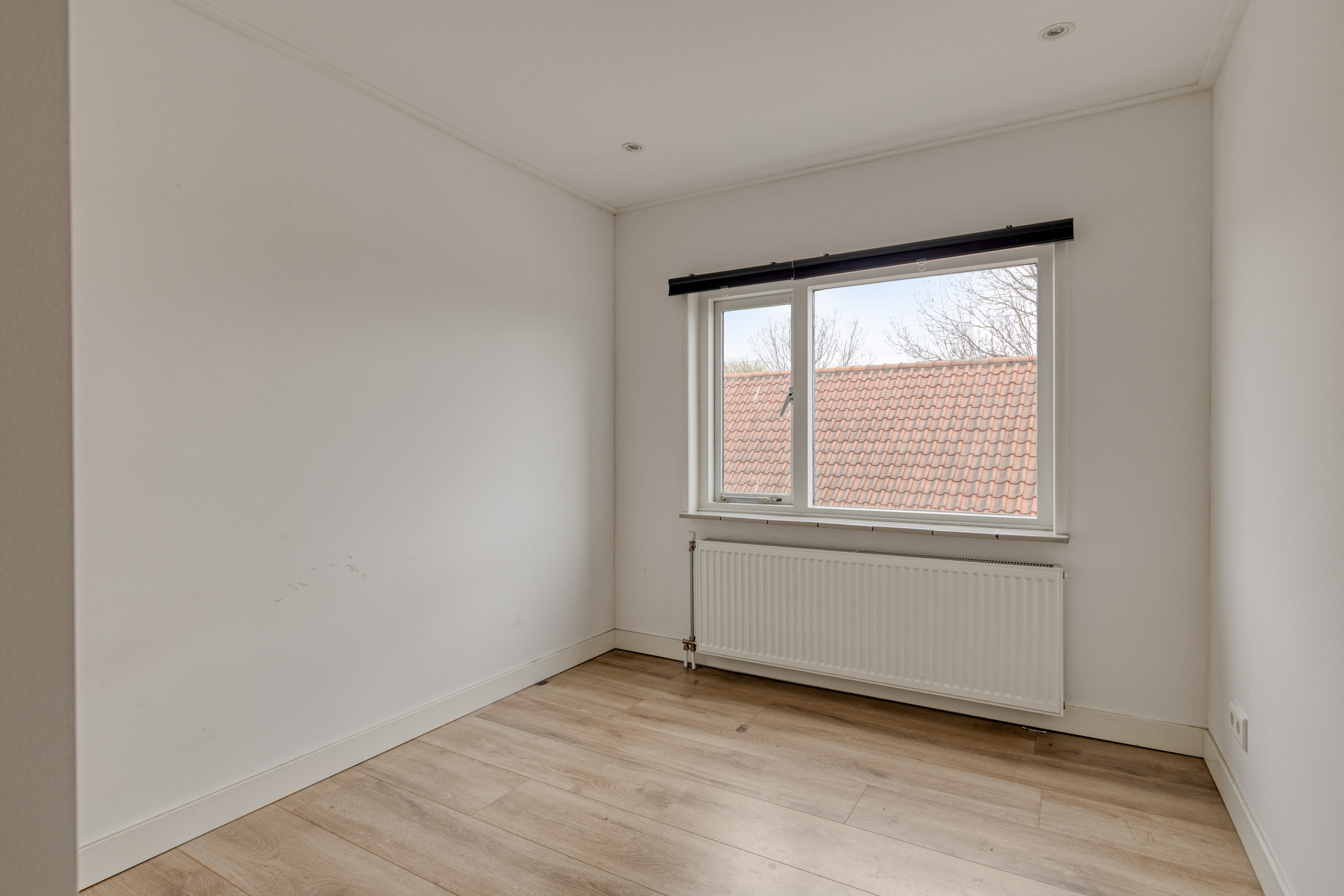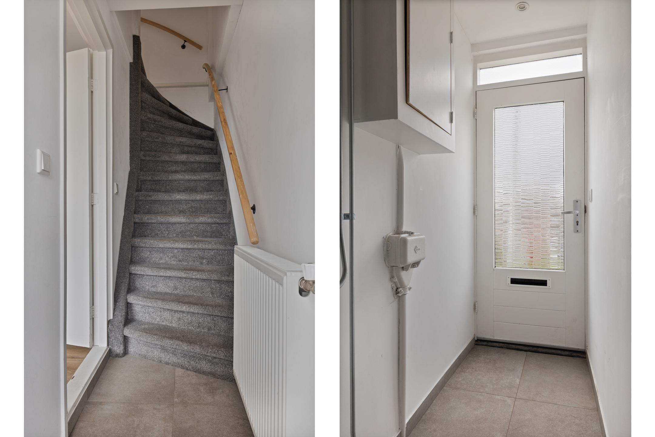 Entree, gang met meterkast en trapopgang, ruime woonkamer met een praktische inbouwtrapkast. Omdat de keuken ruim genoeg is voor het plaatsen van de eettafel, is er in de woonkamer voldoende ruimte voor een leuke inrichting. Op de vloer ligt een laminaat.