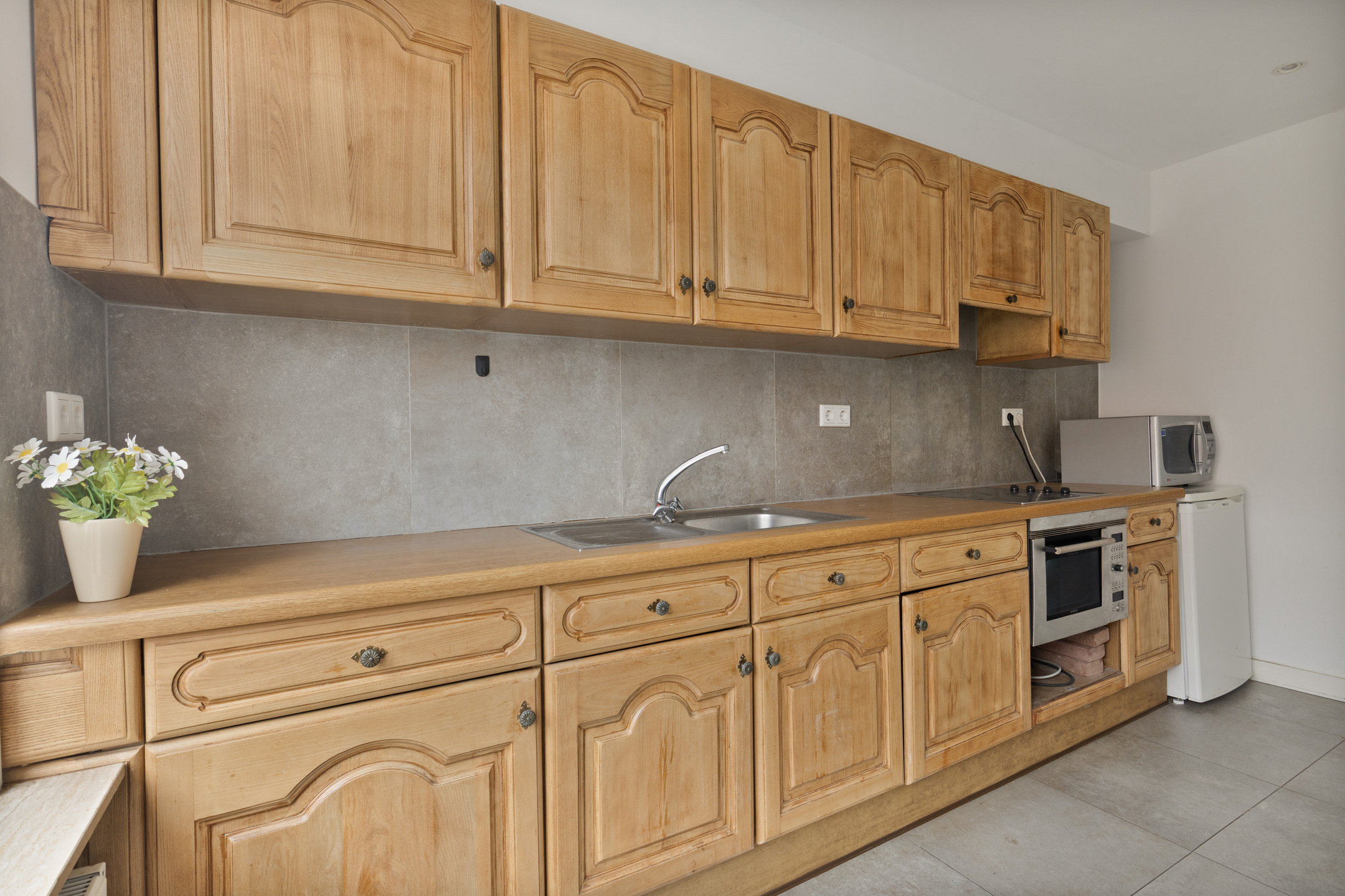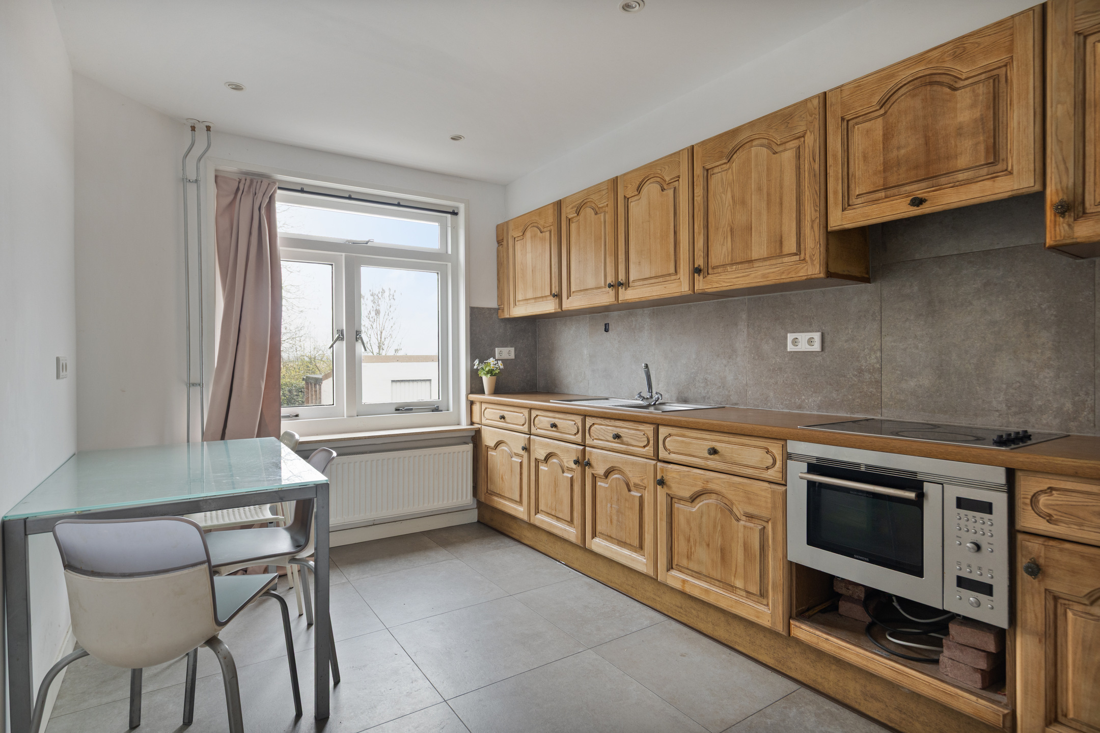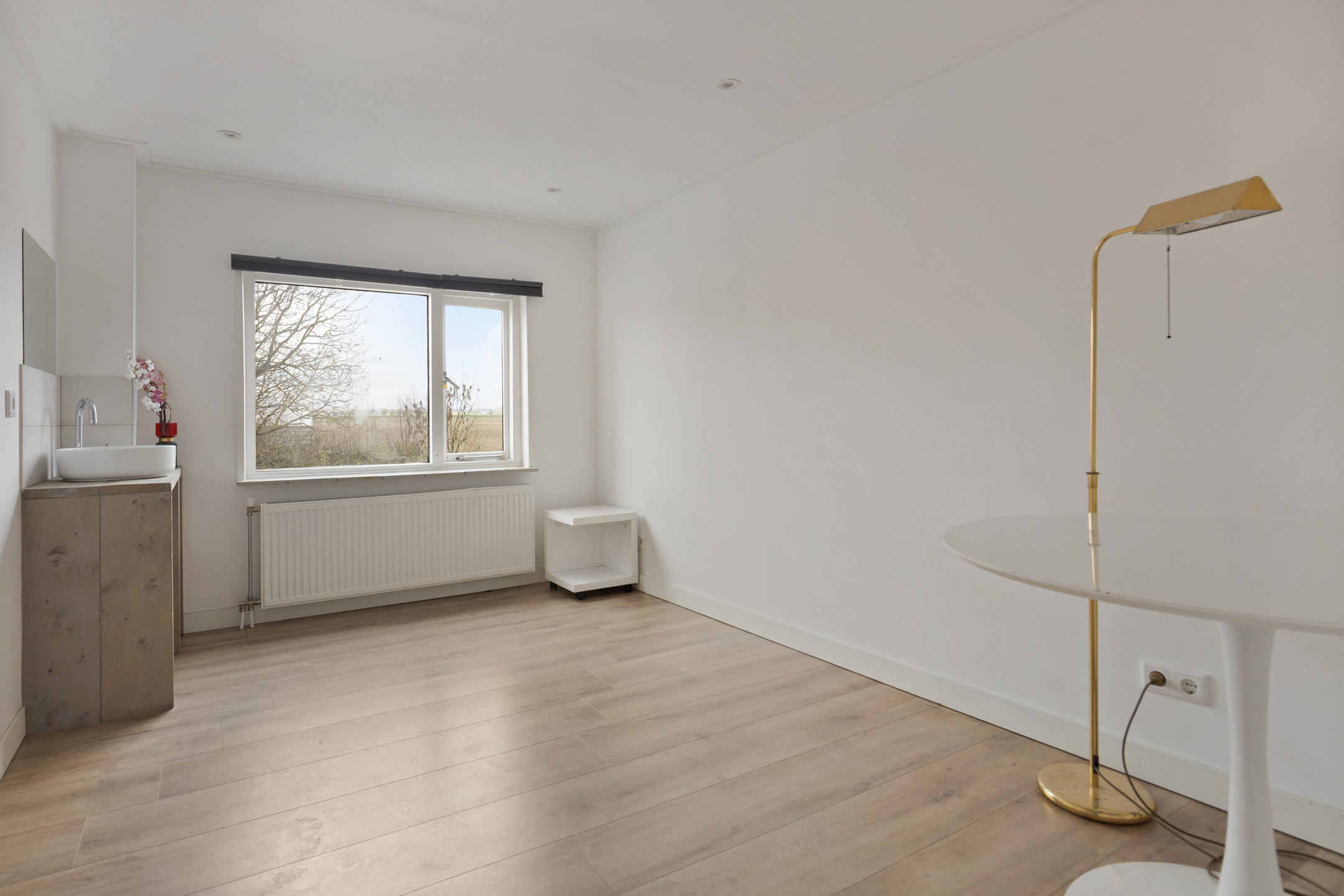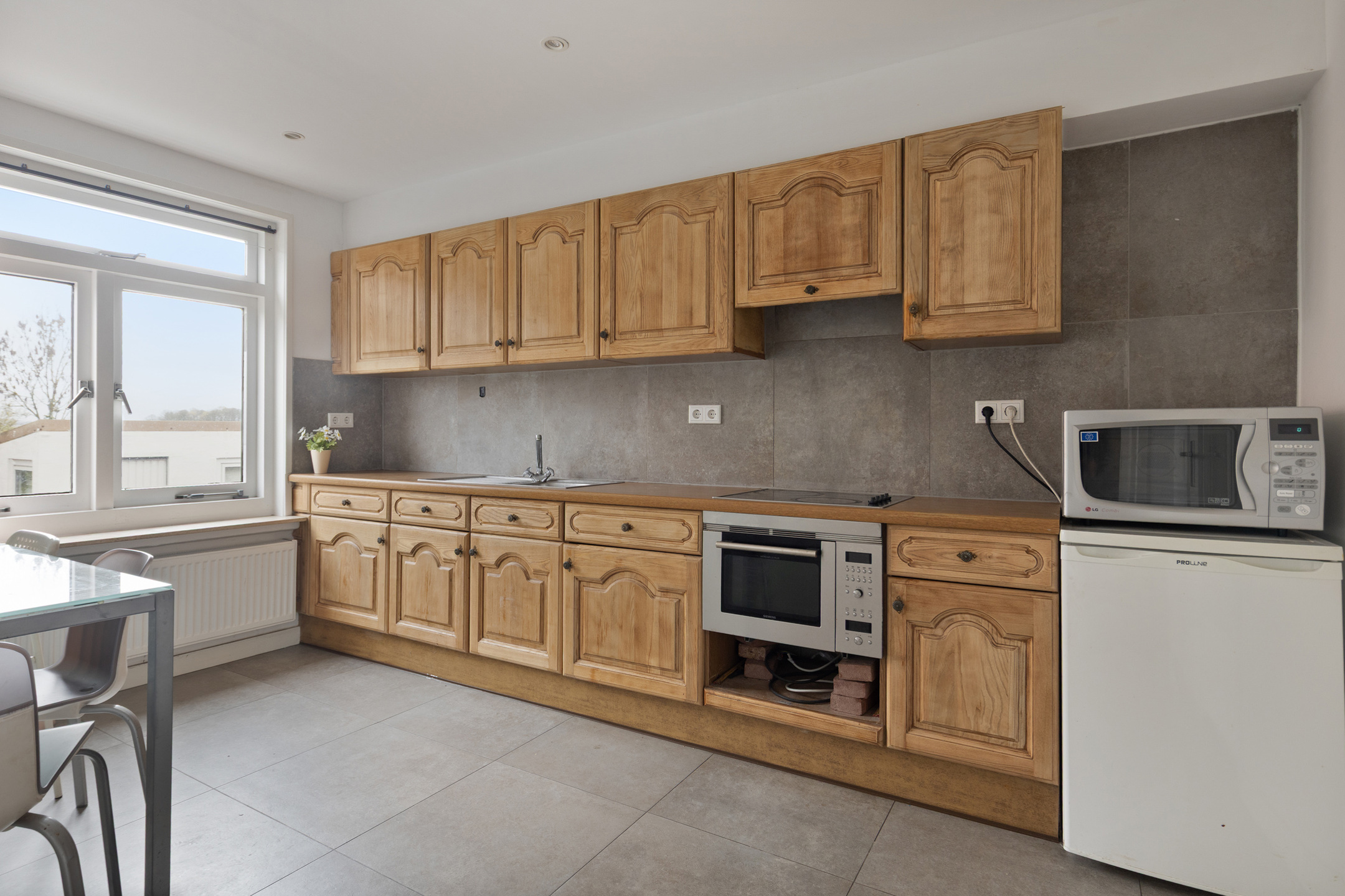 De woonkeuken heeft een leuk zicht over de landerijen, als je hier een nieuw modern keukenblok plaatst, kun je naar hartenlust koken!